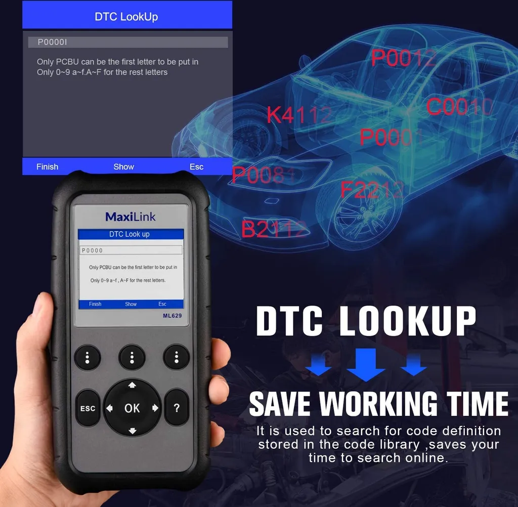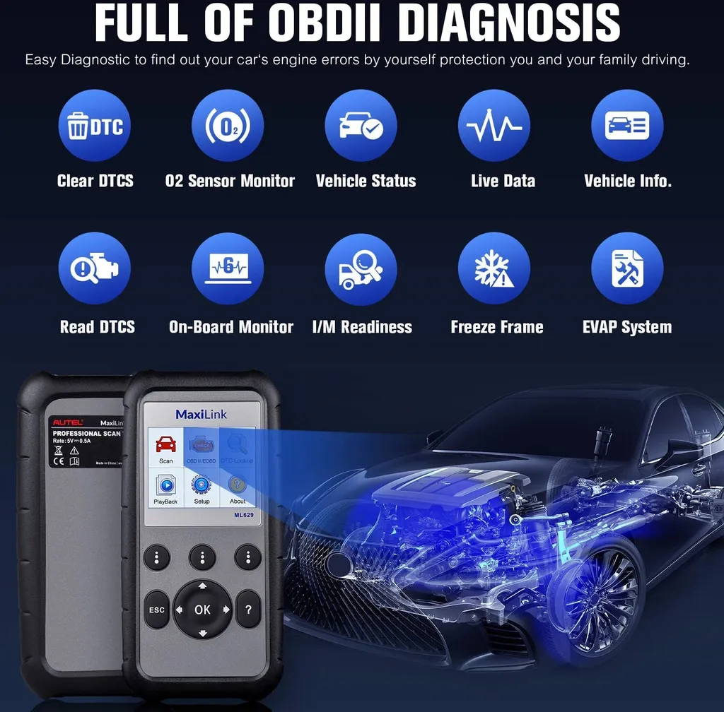 Autel ML629 OBD2-Diagnosegerät Kfz-Auslesegerät Alle OBDII Dieselmotor Benzinmotor, Airbag Antiblockiersystem Motor Getriebe System Tiefe Diagnose, 14 Sprache Deutsche Inkl