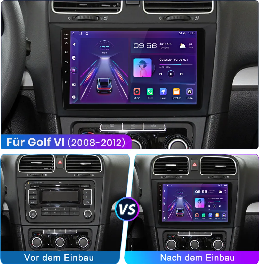 Carplay Android Auto Navi Für Golf 6 2008-2012 Autoradio 9′ ‘Android11 GPS Navigator SWC DAB+2 Din WIFI BT RDS FM