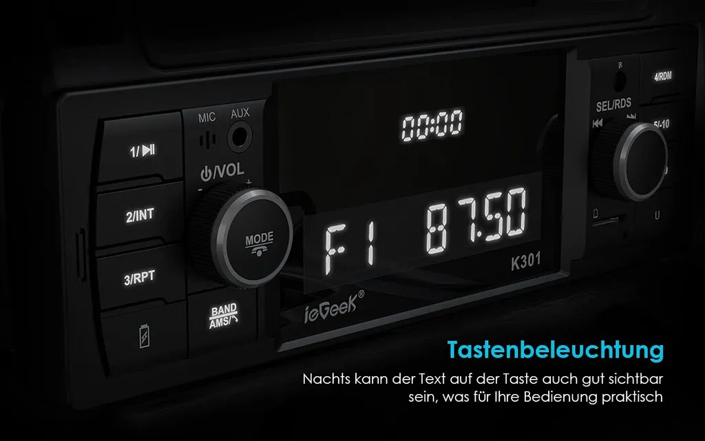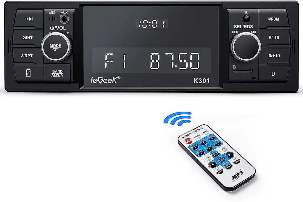 IeGeek Autoradio Bluetooth 5.0 Freisprecheinrichtung, RDS/FM/AM Auto Radio LCD-Display, 2 USB/AUX-IN/SD, MP3 Player, 30 Sender Gespeichert Werden