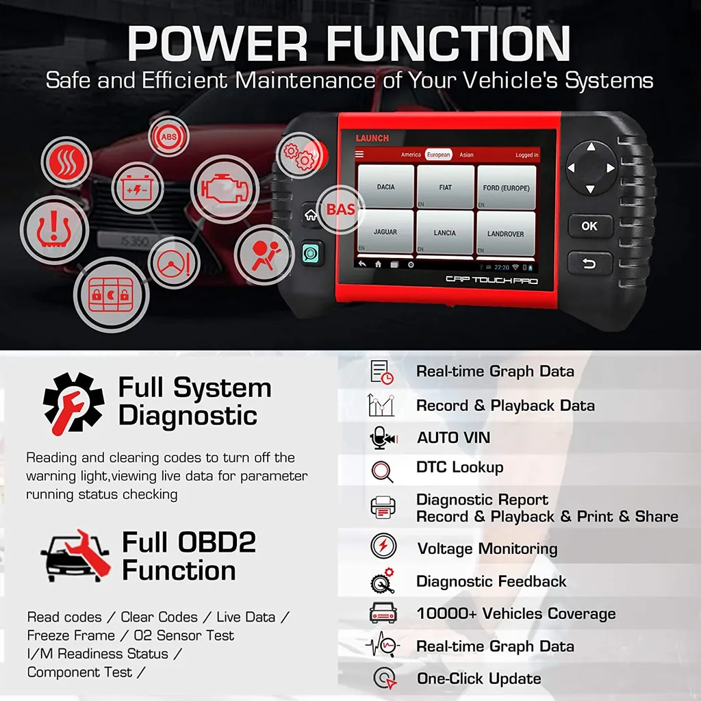LAUNCH CRP Touch Pro Elite Obd2 Daignosegerät Mit Systemweite Diagnose Und 20 Servicefunktionen Öl SAS EPB DPF ABS