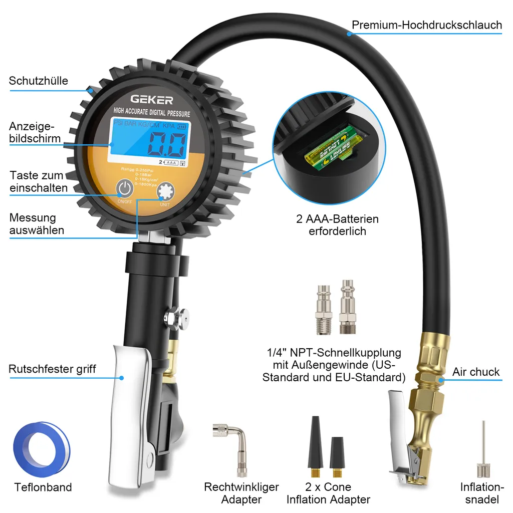 Reifendruckmesser Reifenfüller Reifendruckprüfer Luftdruckprüfer Hohe Präzision 0-255 PSI Reifenfüll-Messgerät