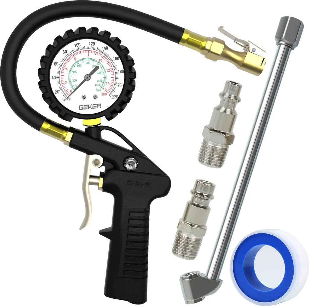 Reifenfüller Reifendruckmesser Reifendruckprüfer Luftdruckprüfer Hohe Präzision 220 PSI Für Auto Motorrad PKW LKW Reifenfüll-Messgerät, GEKER