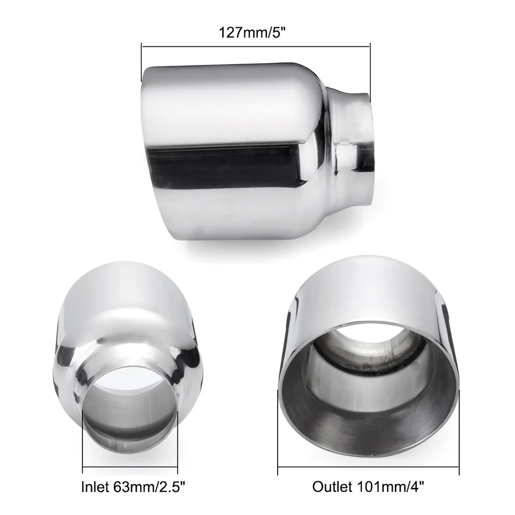 Universal 63mm Auto Auspuff Auspufftopf Endrohr Edelstahl 2.5″ Inlet 4″ Outlet