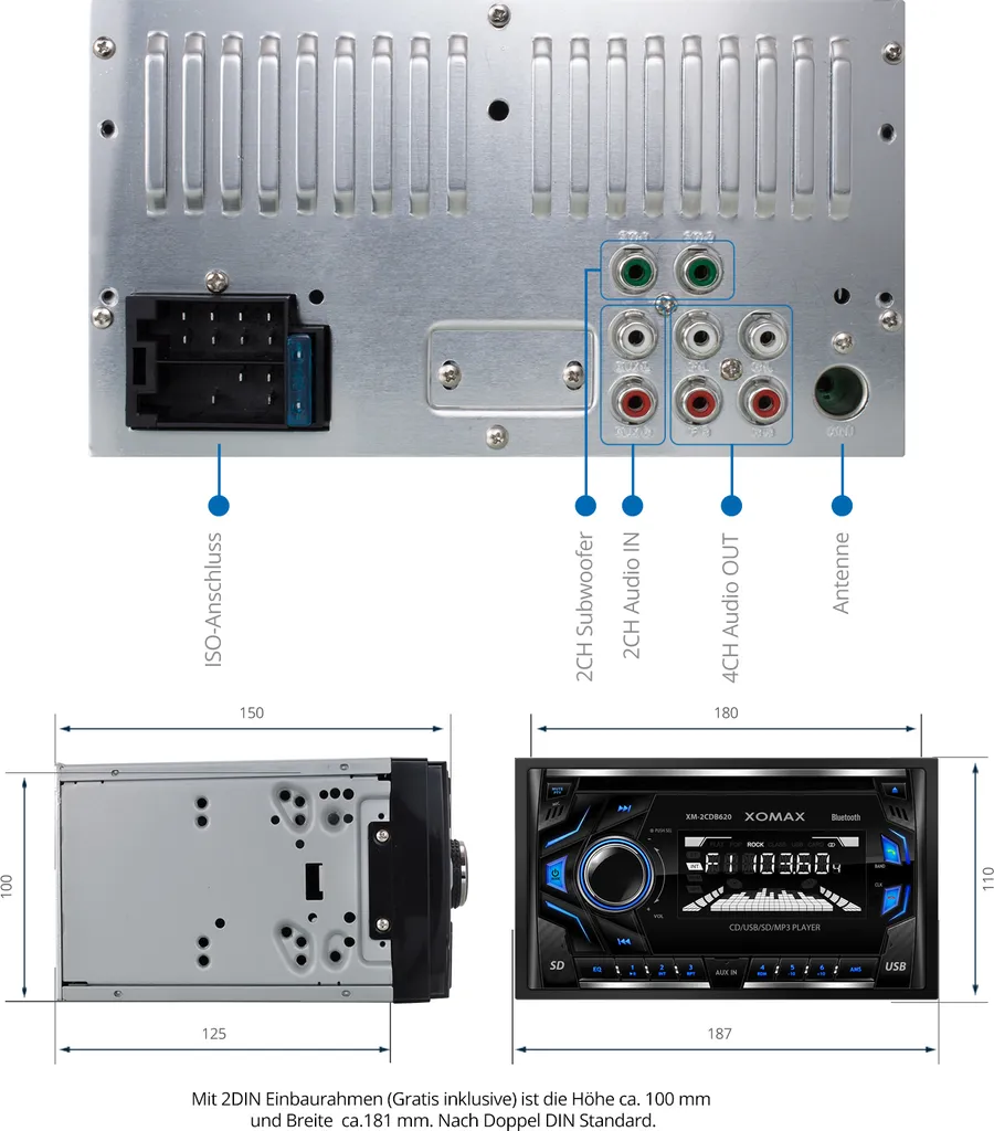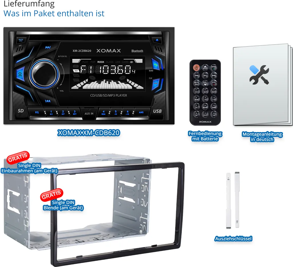 XM-2CDB620 Autoradio Mit CD Player, Bluetooth Freisprecheinrichtung, USB, SD, AUX, 2 DIN