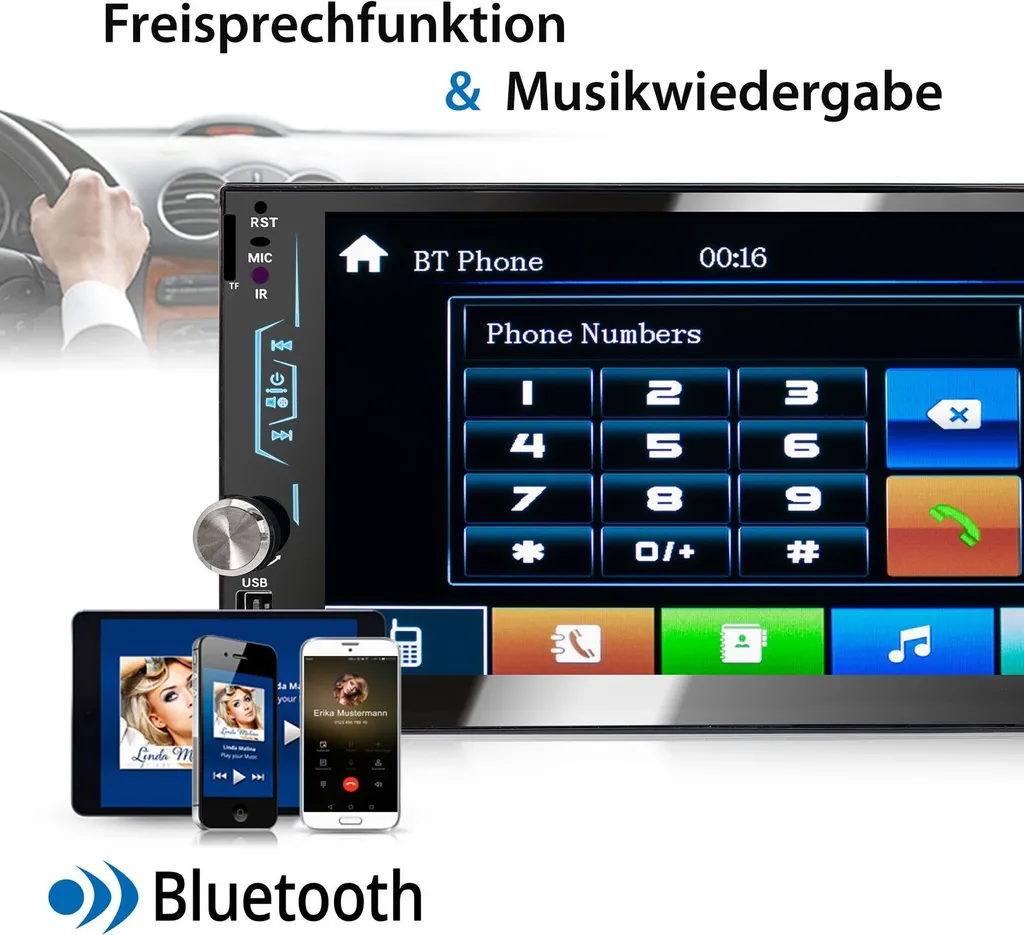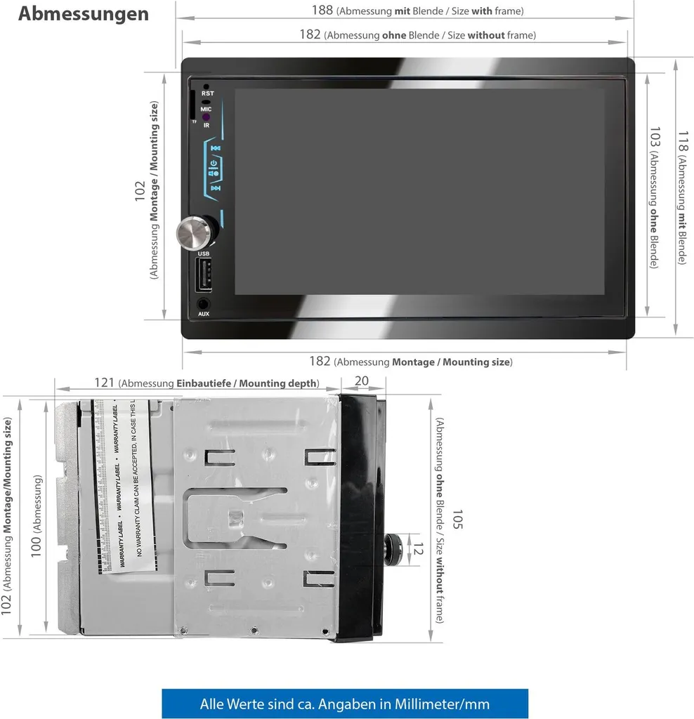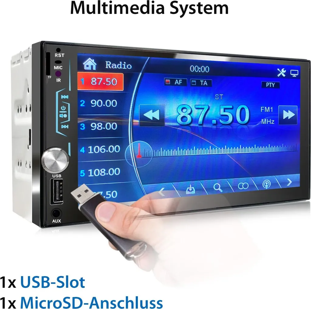 XOMAX XM-2V783 Autoradio Mit 7 Zoll Touchscreen Bildschirm (kapazitiv), Mirrorlink, Bluetooth, USB, AUX, SD, 2 DIN