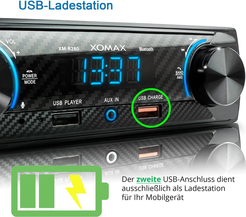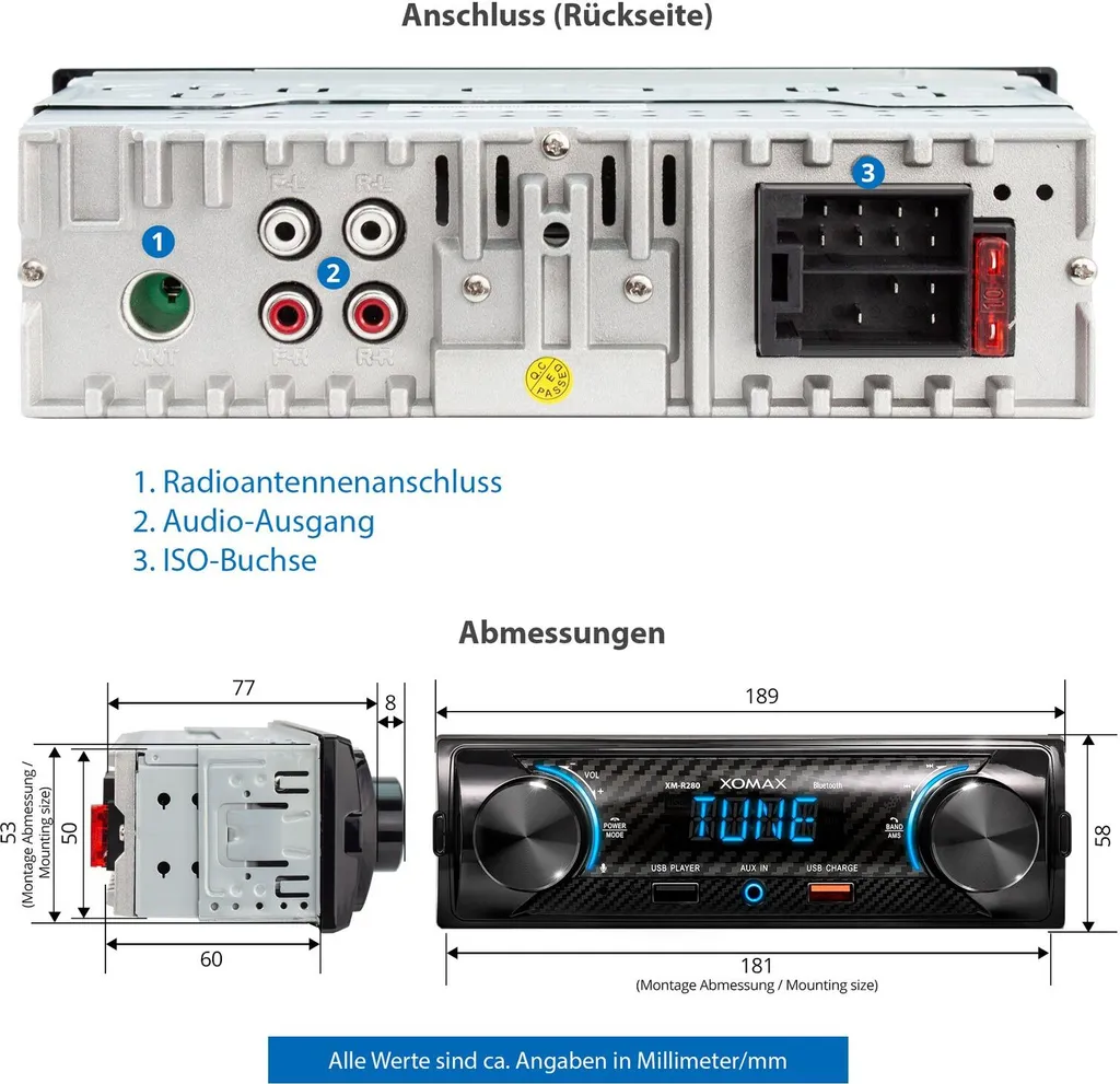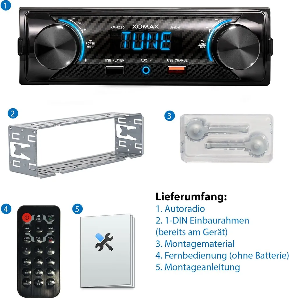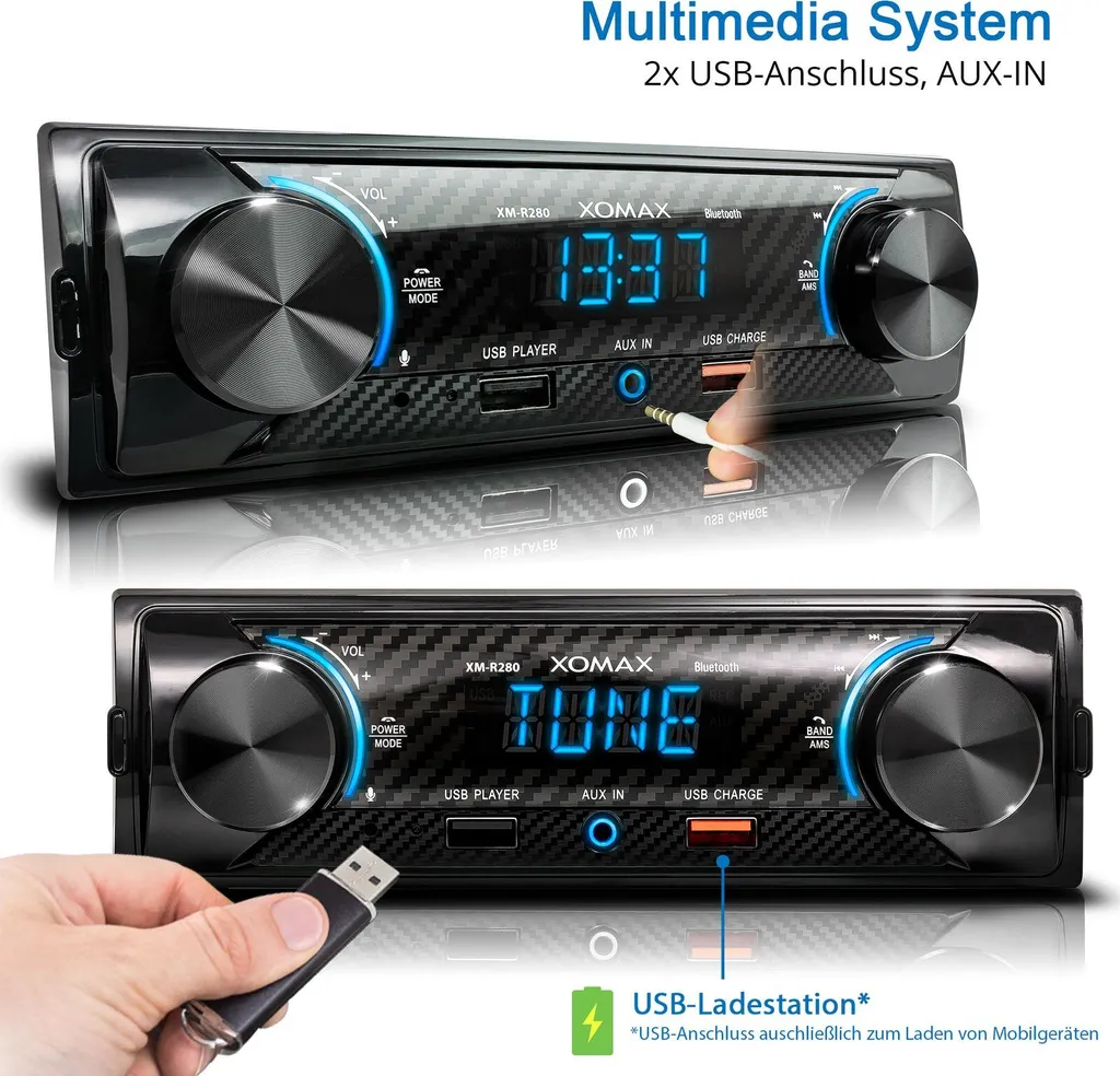 XOMAX XM-R280 Autoradio Mit Bluetooth Freisprecheinrichtung, 2. USB Mit Ladefunktion, Aux In, 1 DIN