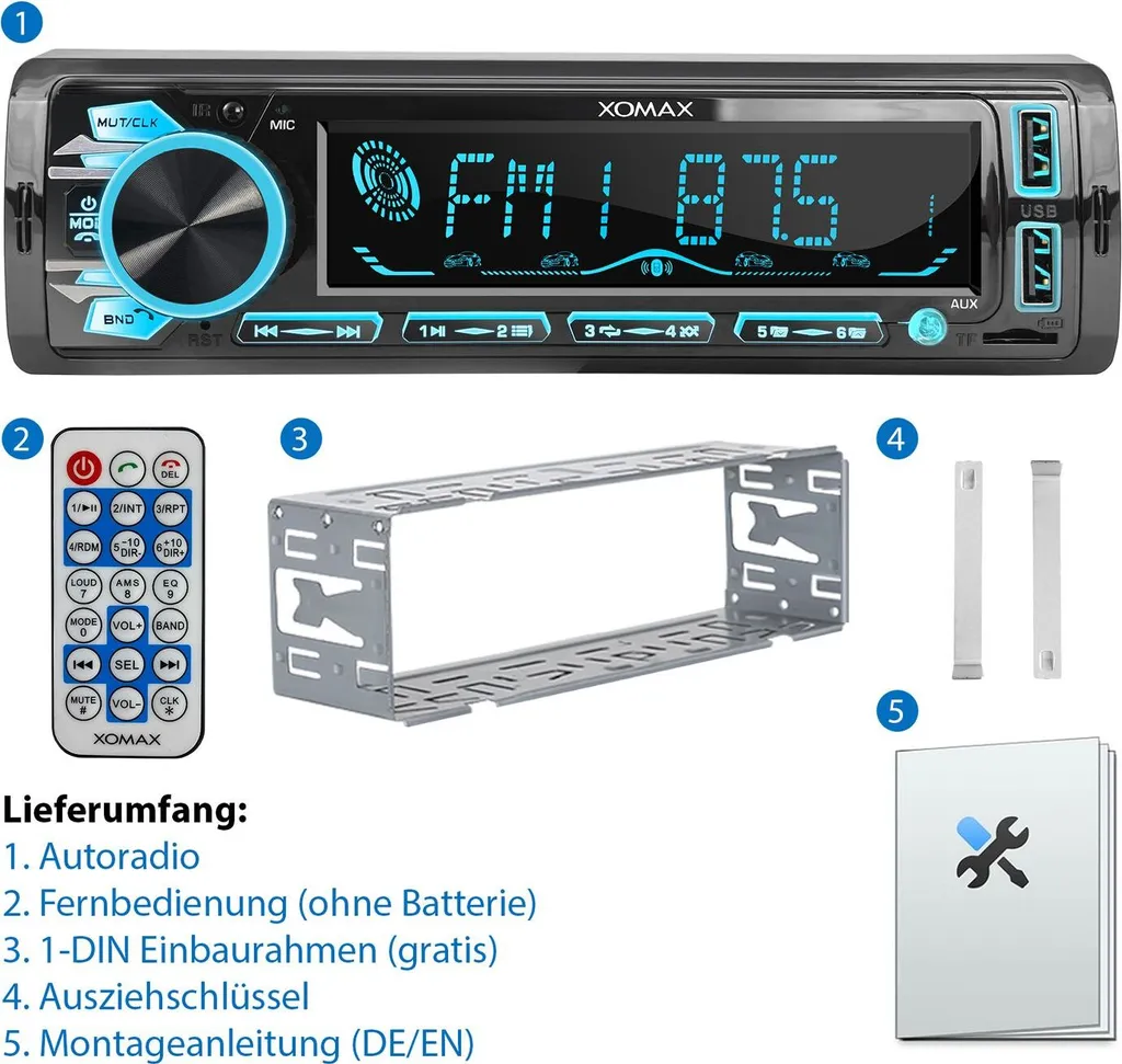 XOMAX XM-R286 Autoradio Mit Bluetooth Freisprecheinrichtung, 2. USB Mit Ladefunktion, SD, AUX, MP3, 1 DIN