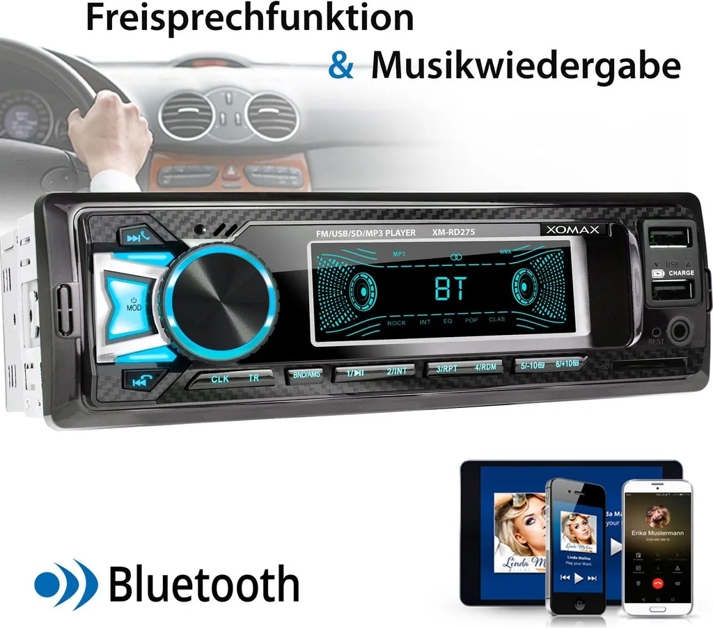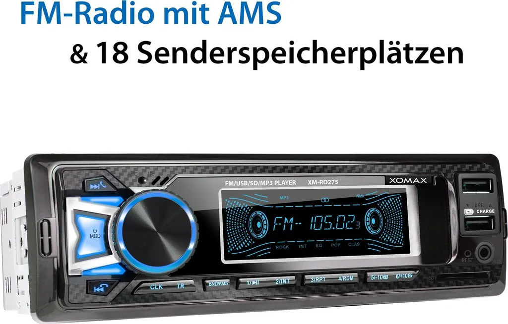 XOMAX XM-RD275 Autoradio Mit DAB+ Plus, Bluetooth, 2. USB Mit Ladefunktion, SD, Aux, 1 DIN