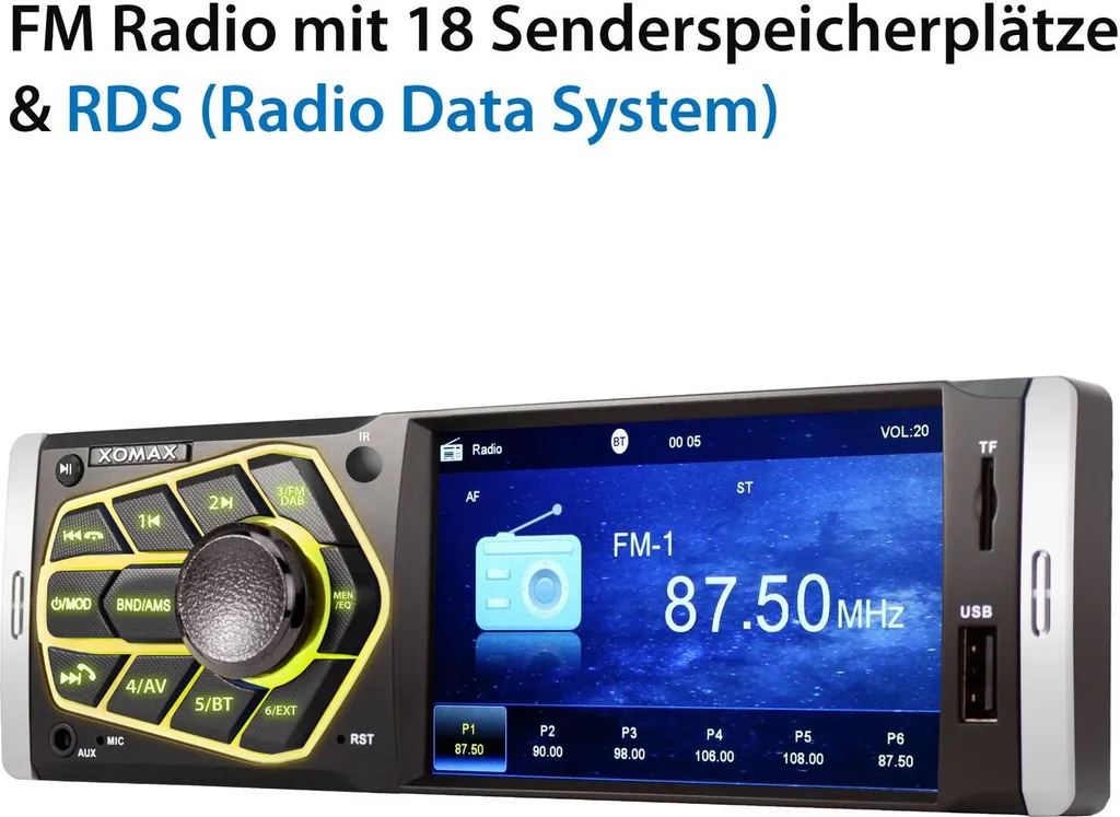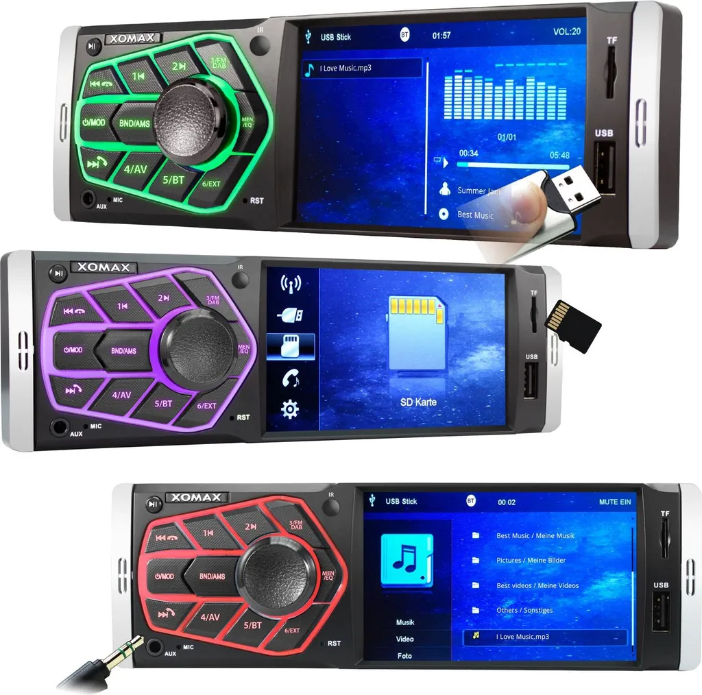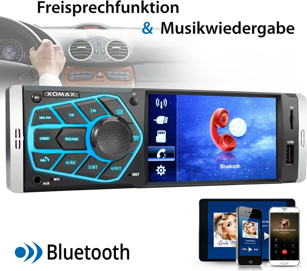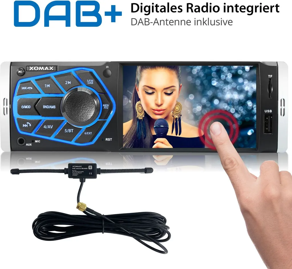 XOMAX XM-V418 Autoradio Mit DAB+ Plus, 4 Zoll Touchscreen Bildschirm, Bluetooth, USB, SD, Aux, 1 DIN