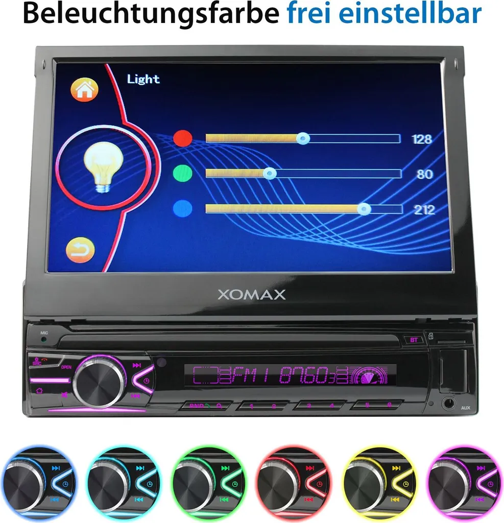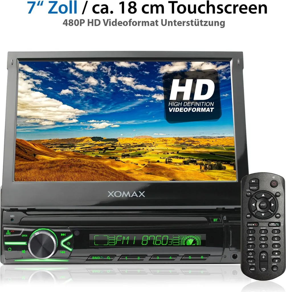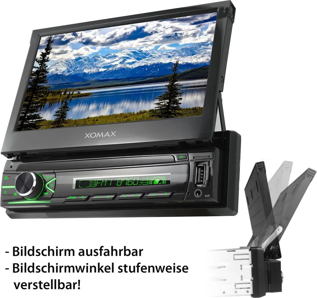 XOMAX XM-V746 Autoradio Mit 7 Zoll Touchscreen Bildschirm (ausfahrbar), Bluetooth, USB, SD, AUX, 1 DIN