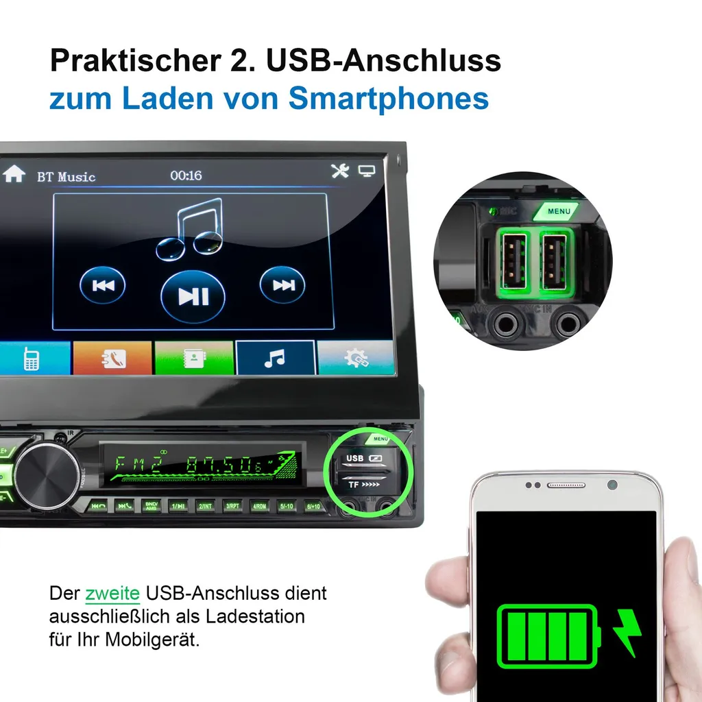 XOMAX XM-R280 Autoradio Mit Bluetooth Freisprecheinrichtung, 2. USB Mit Ladefunktion, Aux In, 1 DIN