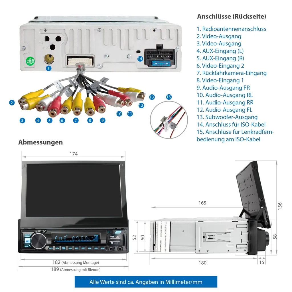XOMAX XM-2V719 Autoradio Mit 7 Zoll Touchscreen Bildschirm, Bluetooth, USB, SD, AUX, 2 DIN